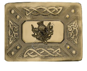 Celtic with Thistle Badge Kilt Belt Buckle – Antique / Chrome Finish